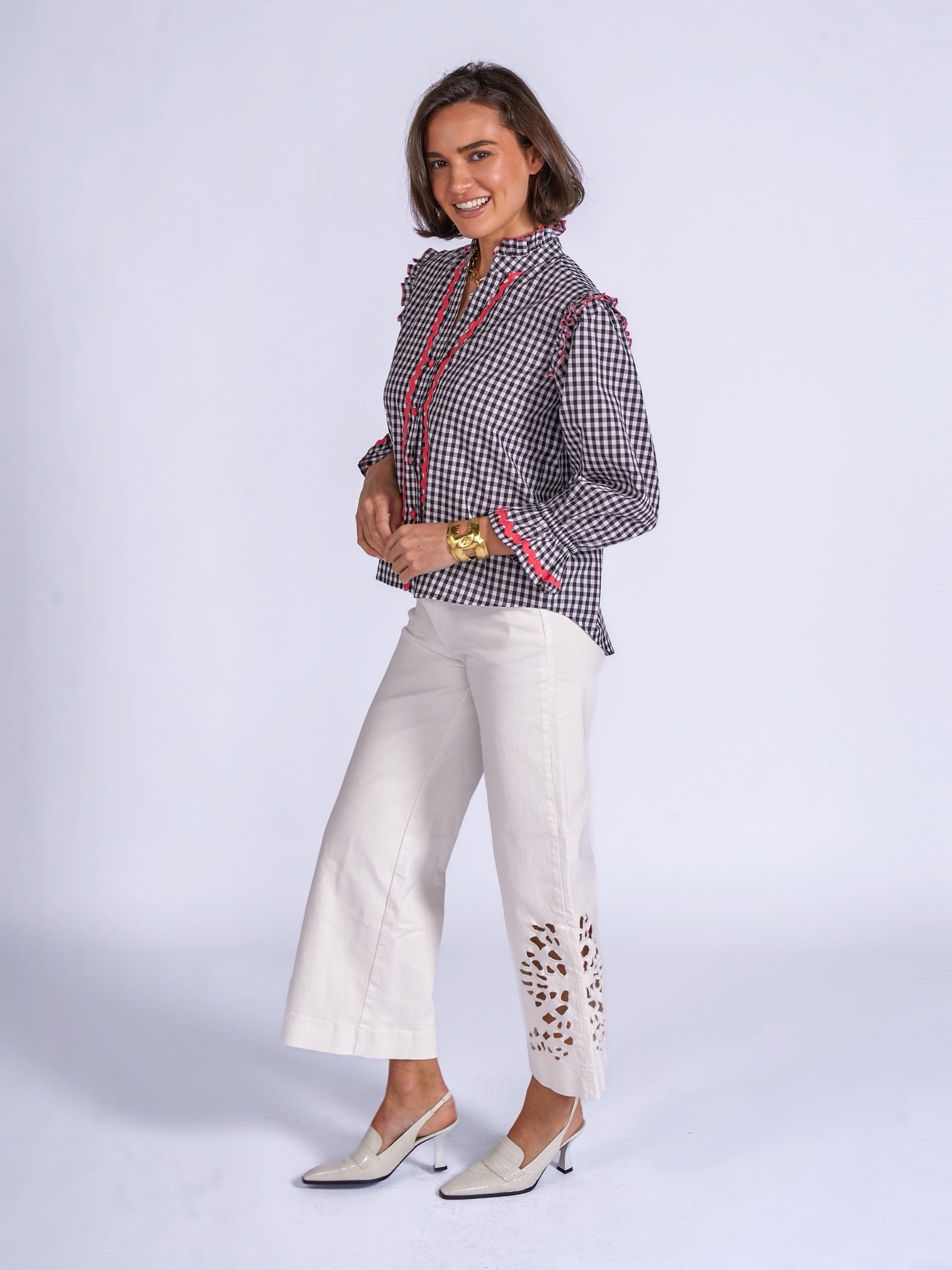- Gingham Cotton Blouse