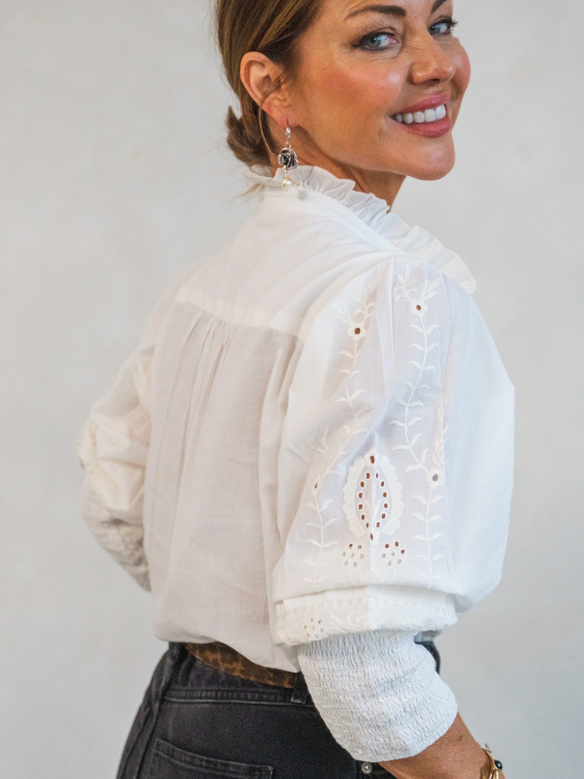 Beo- meaning ‘alive’ in Irish- is a wardrobe essential that blends sophistication with effortless charm. Crafted by a soft, breathable cotton, with intricate embroidery and covered buttons adding a full ‘lux’ factor. ‘Beo’ is also embossed with delicate lace through the front panels. Our blouse is perfect for both casual and dressy occasions, it pairs beautifully with jeans and with our ‘Legendary’ skirts.