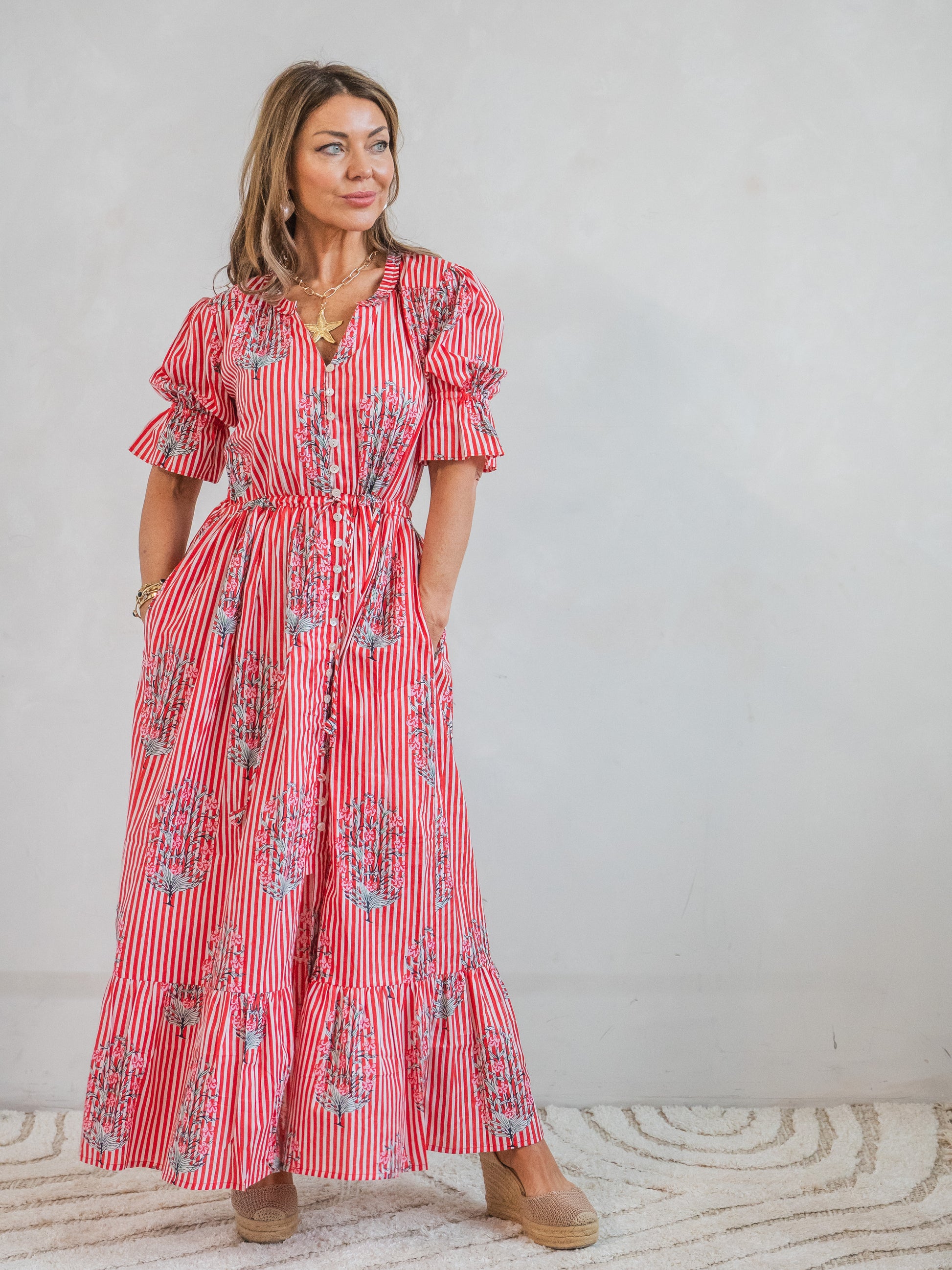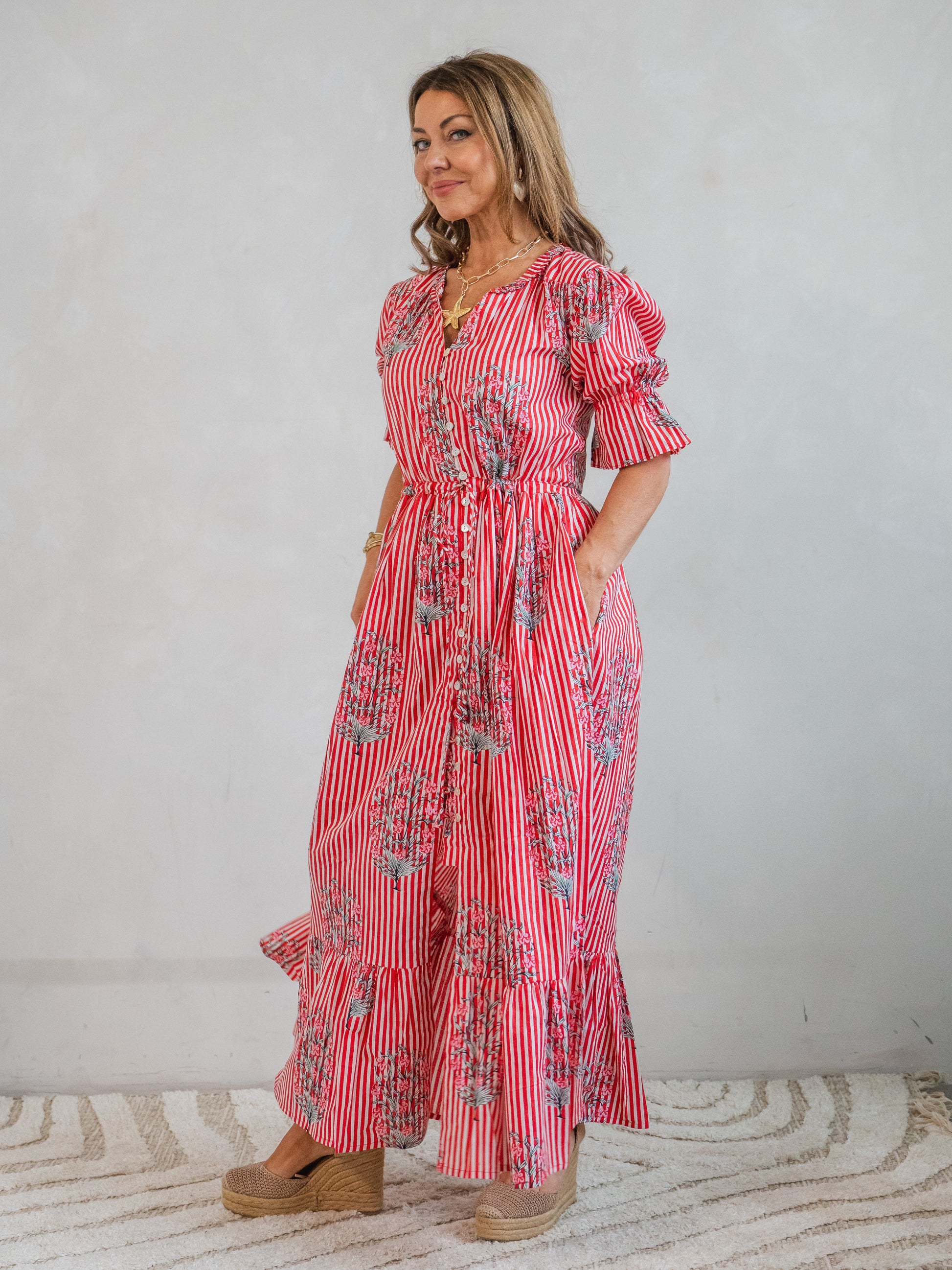 'CHERISH' DRESS IN RED STRIPE GARLAND