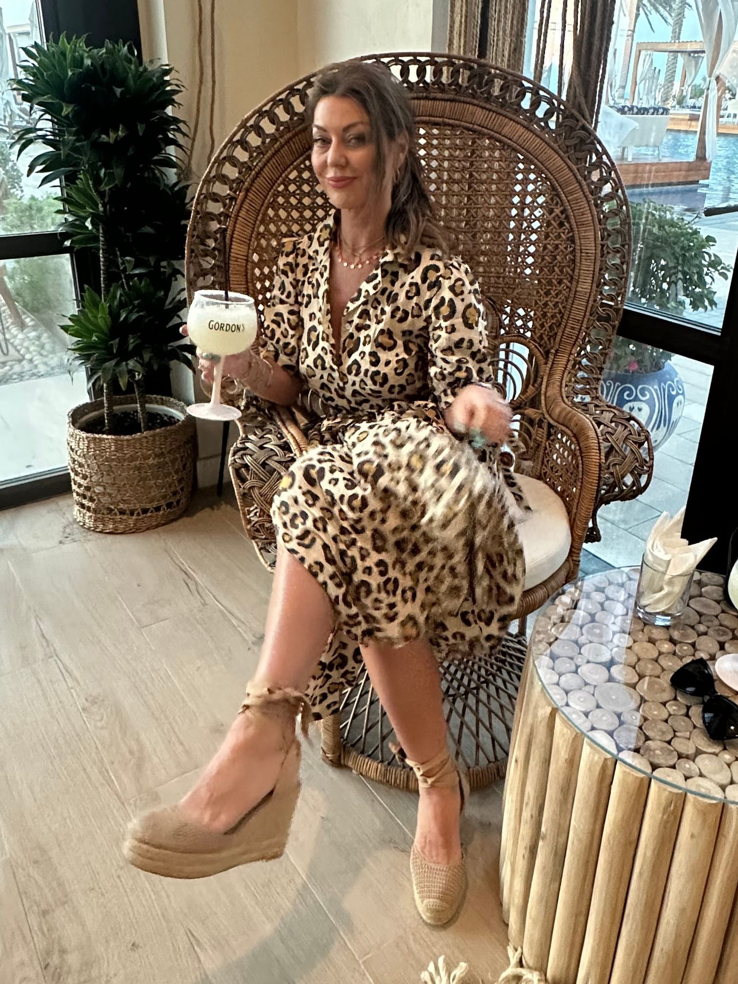 This one will take you from beach to bar and fancy occasions by swapping the accessories. Throw over poolside attire and add raffia wedges (a La Fin in the photos) for sundowners. Swap the comfy wedges for a pair of gold stilettos and Gold belt for fancy dinners. This dress will also transition into cooler weather layered over leggings and with a leather jacket.