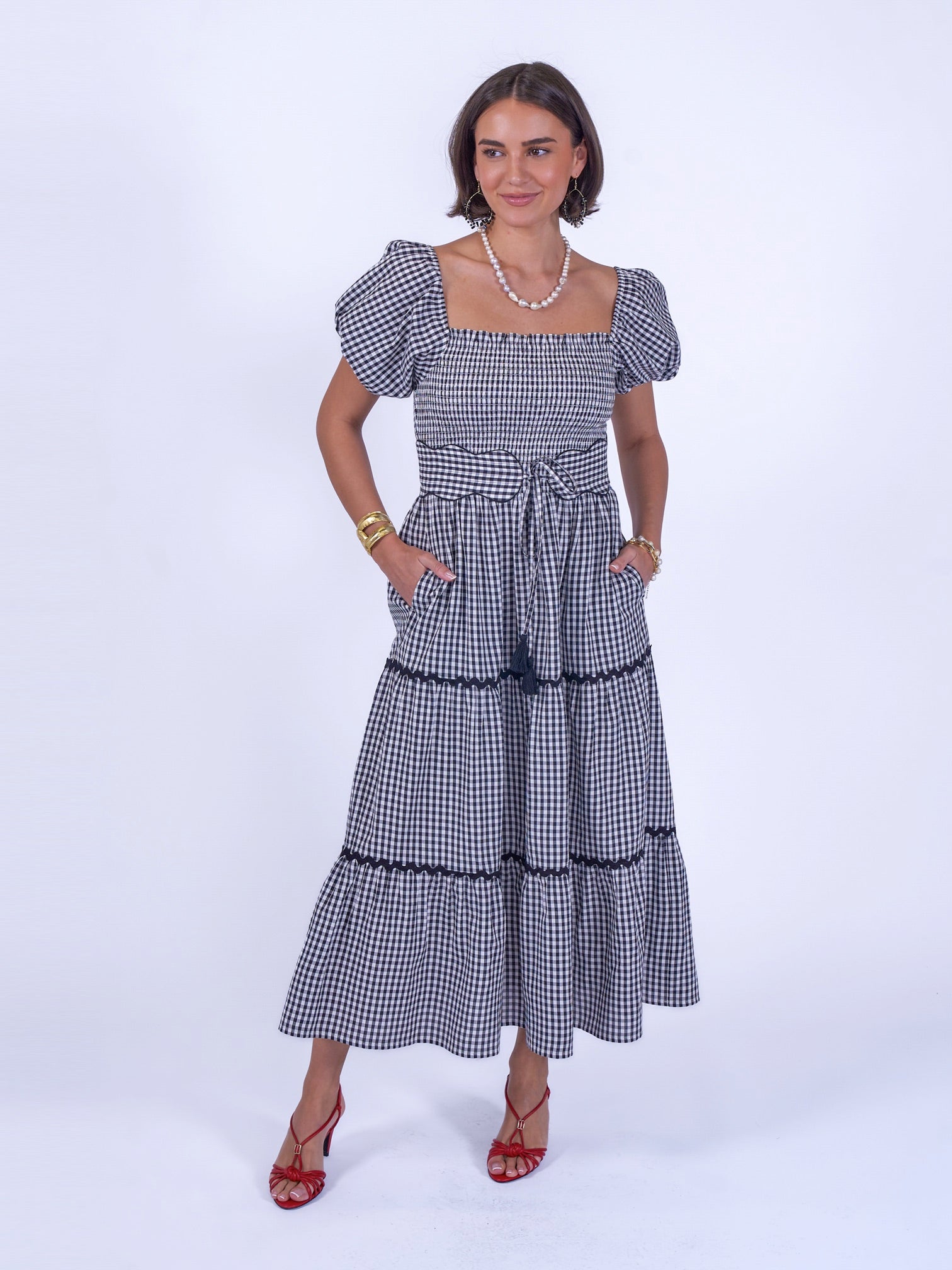 Gingham has always had a timeless allure. Paired with our most flattering Honour dress, it’s an absolute winner! This absolute best seller is a sassy, sophisticated and sexy dress giving classic elegance with retro fun. She has a relaxed, flowing silhouette enhancing its shape, while maintaining a comfortable fit. Elastic cuffs can be worn short sleeved or ¾ and can be worn on or off the shoulders. Not to forget she has pockets!! And a beautifully crafted quilted belt to cinch the waist.