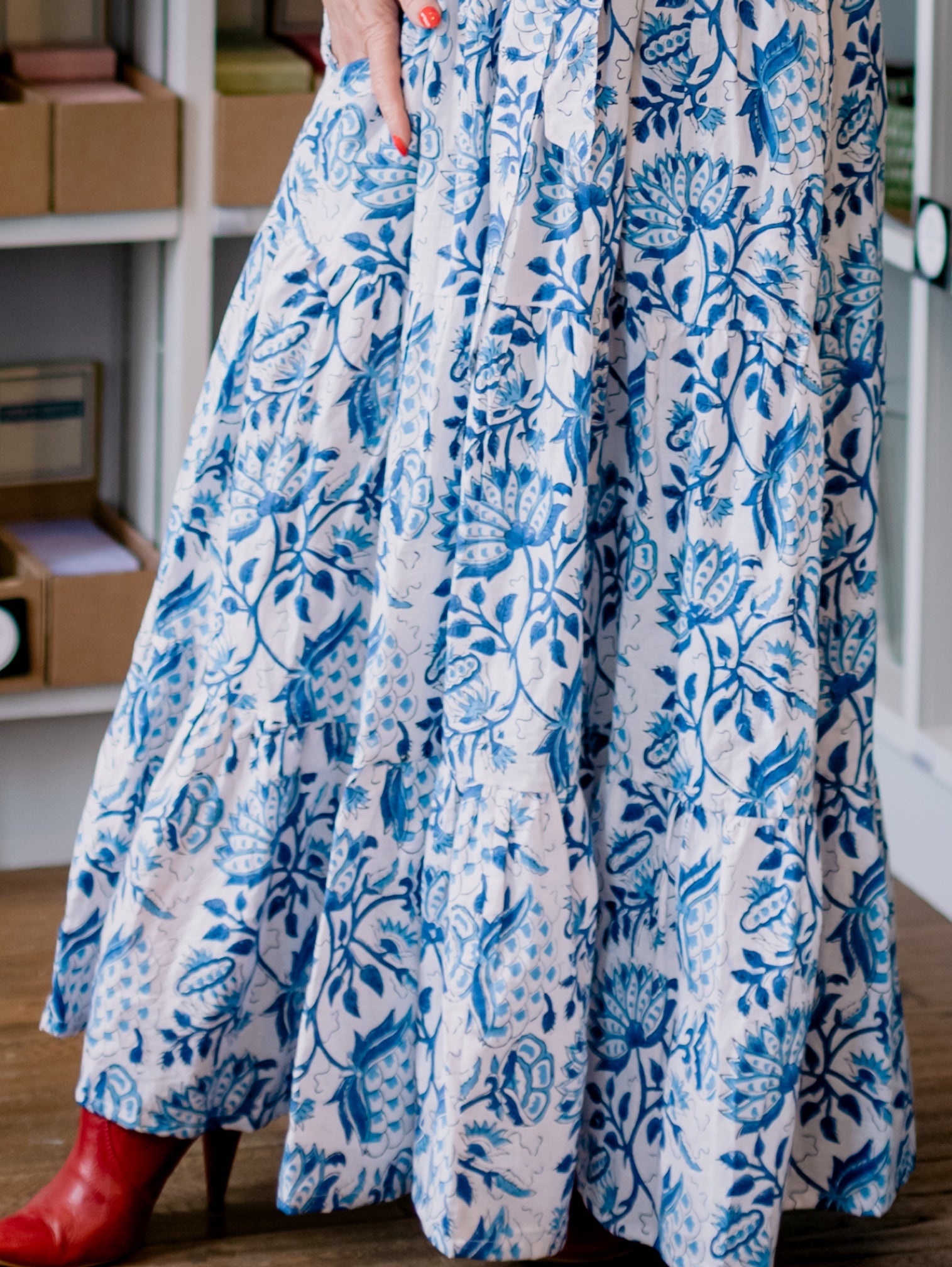 Our Hope Dress style has been a firm favourite since we launched it in September 21. In fact it was our very first design and its popularity hasn’t waned – one little bit! We designed China Blue as the perfect ‘light and airy’ vibe we imagine swanning around in this Summer!
