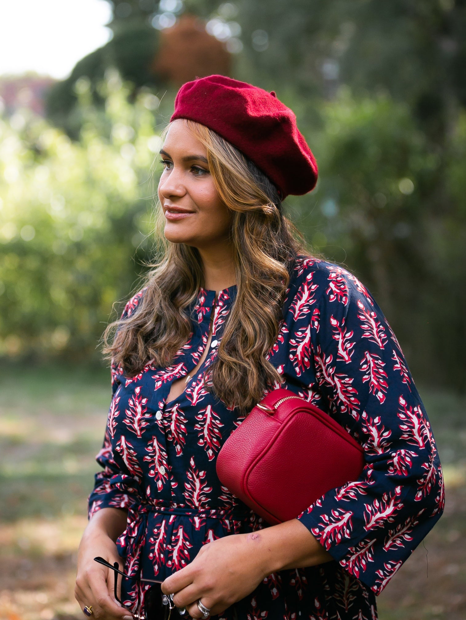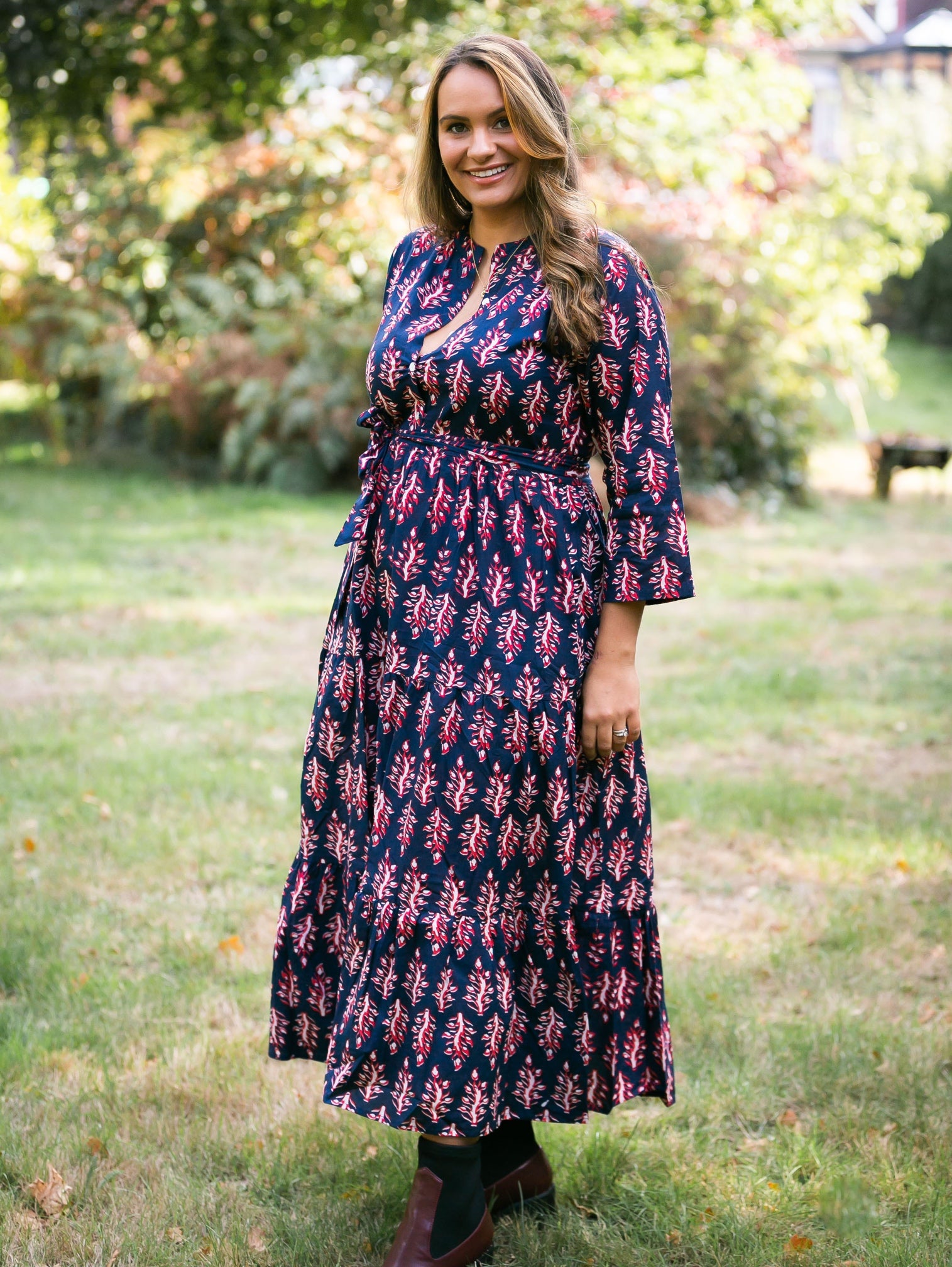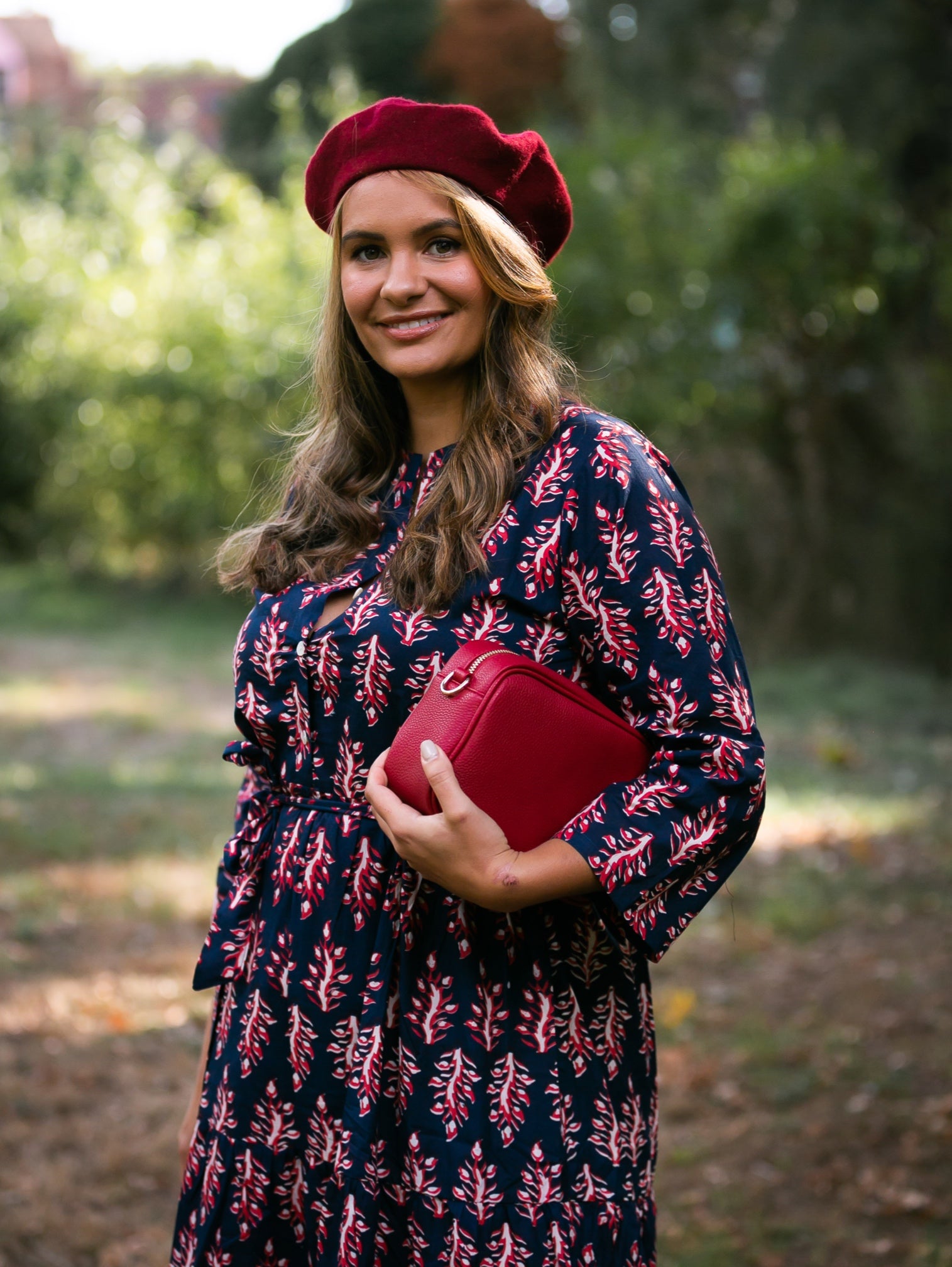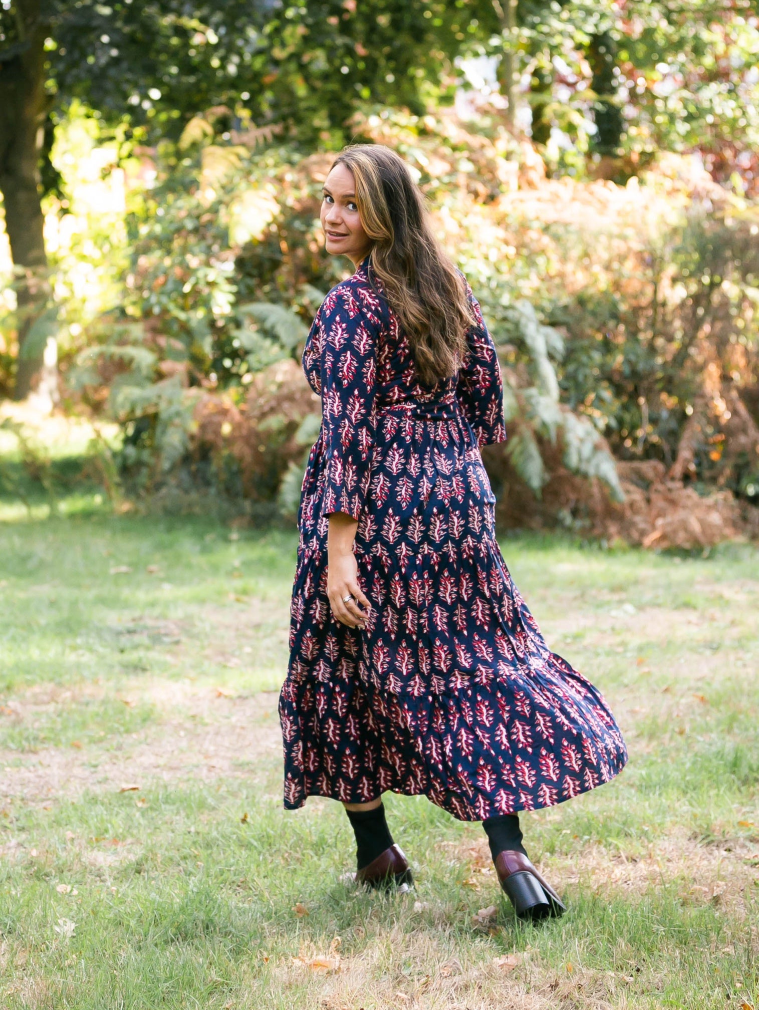 There’s no need to pack away your dresses 👗 when the temperatures drop! We’ve carried this versatile style into Autumn Winter in a range of gorgeous fabrics that will work great with Autumn-hued accessories. Our newest fabric, Flame, is a combination of classic French navy blue with a red motif and fawn accents. ‘Hope’ with its own belt as standard and some really handy pockets of course!