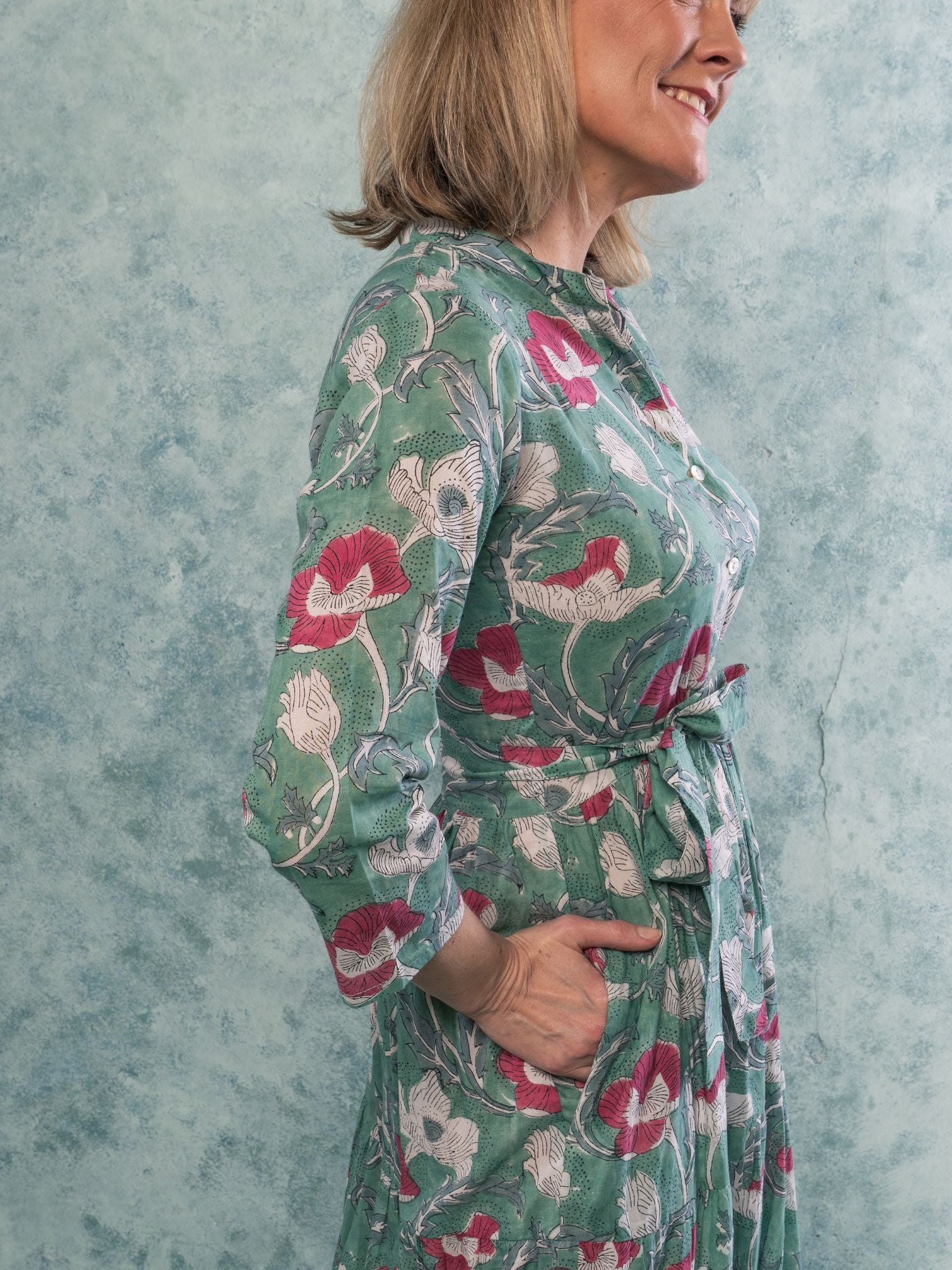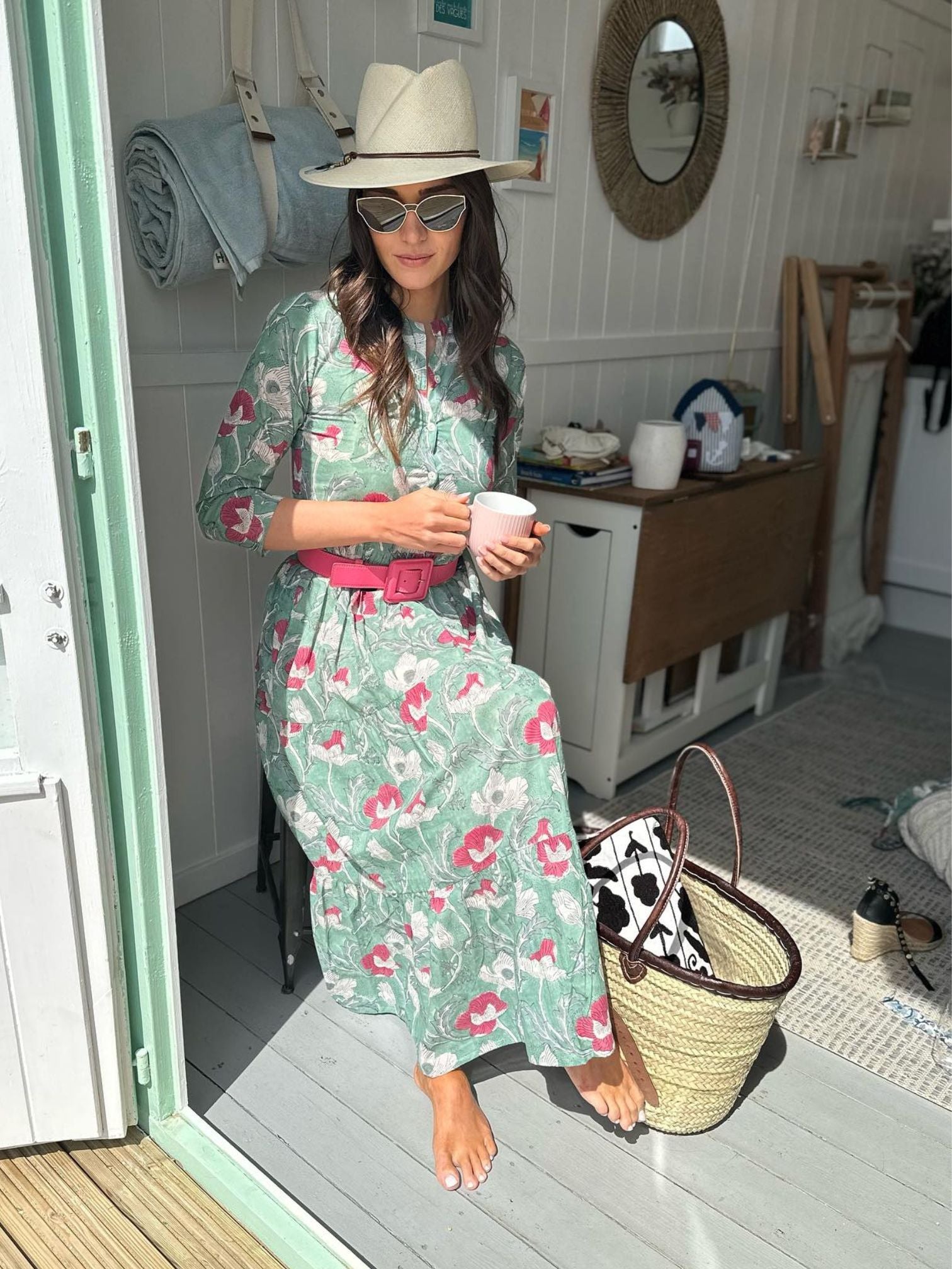 They’ll be green with envy! What a combo – cool mint with statement pink block printed flowers – a dreamy fabric for our best selling ‘Hope’ dress. The cotton fabric with loose fitting waist and skirt will keep you cool on warmer days. Pockets and self-fabric belt complete the perfection!