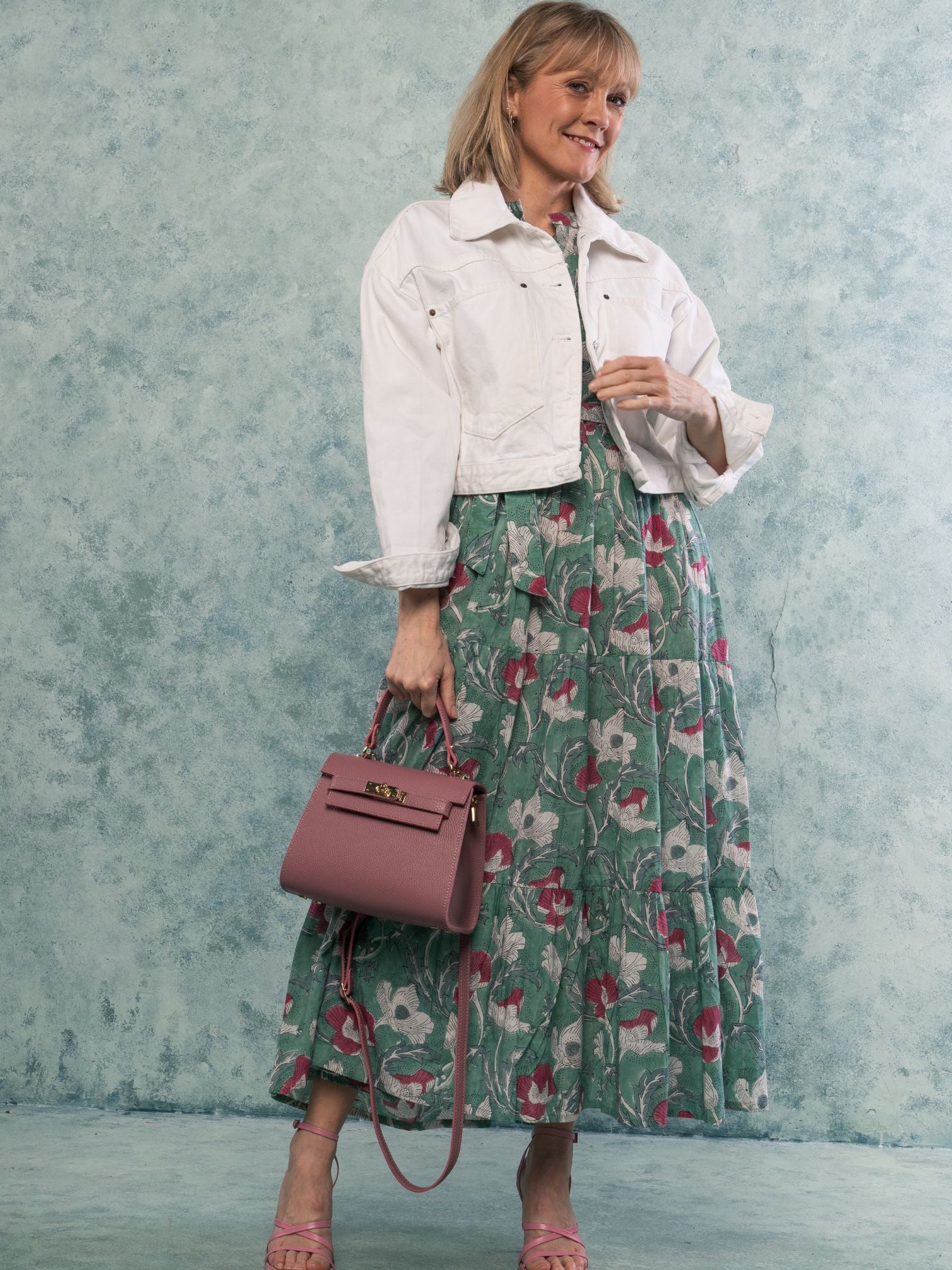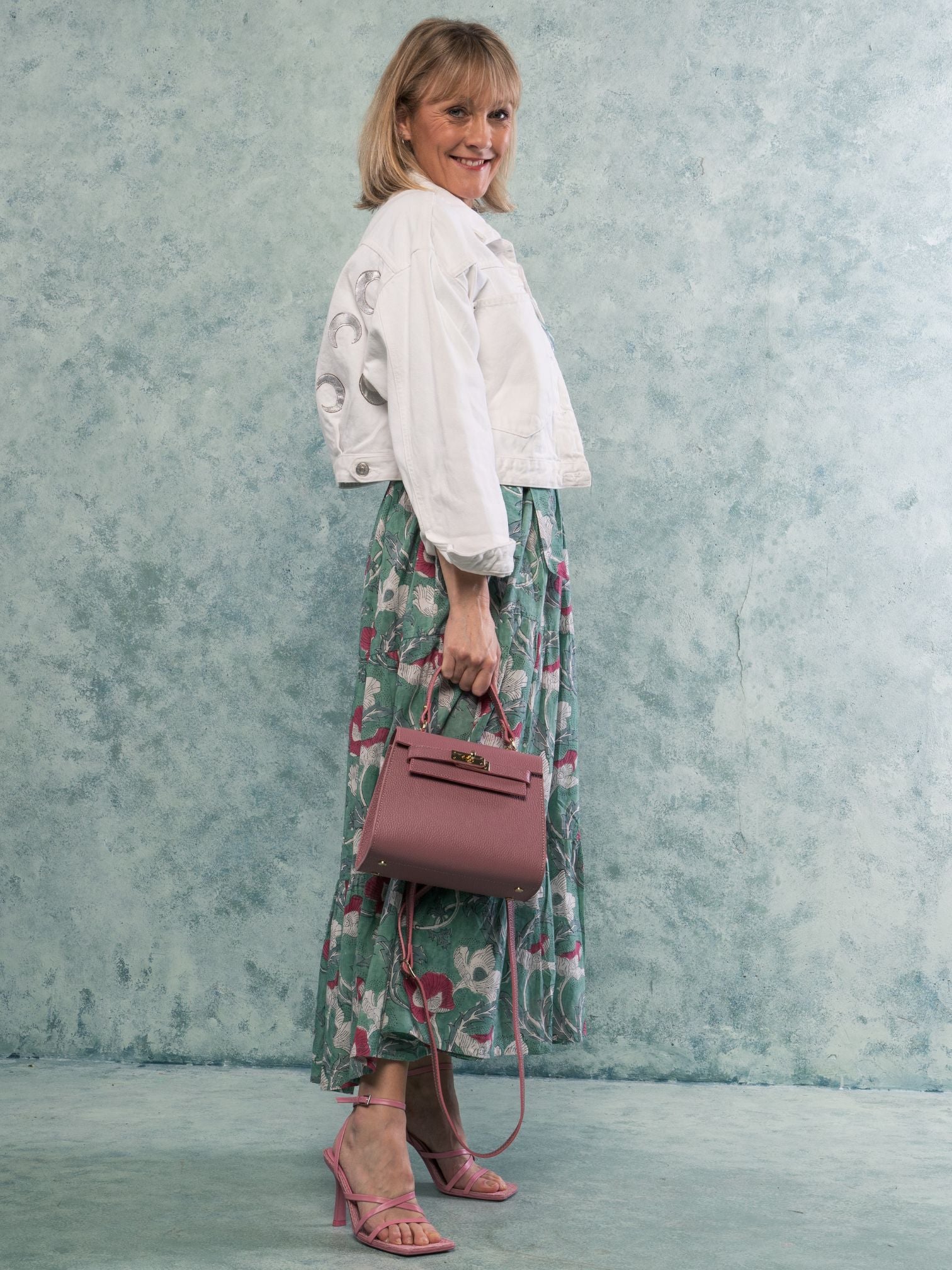 We’ve pulled out the pink by styling this with some soft pink strappy heels which would look gorgeous for a relaxed wedding or evening dinner. Layer up when the sun goes down in a white jean jacket – ours is from upcycling Queen @JeanGenie_denim.