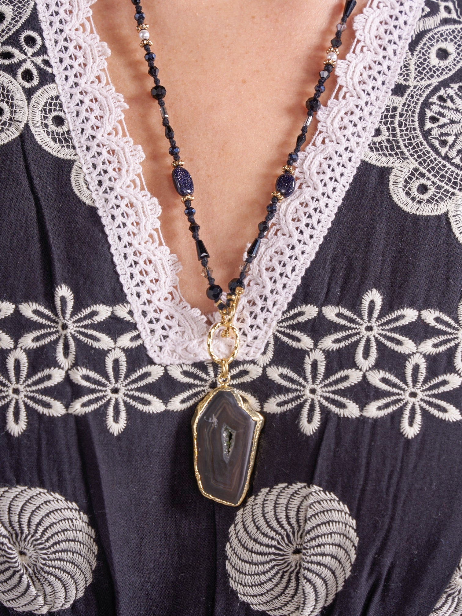- Lace trims to collar
