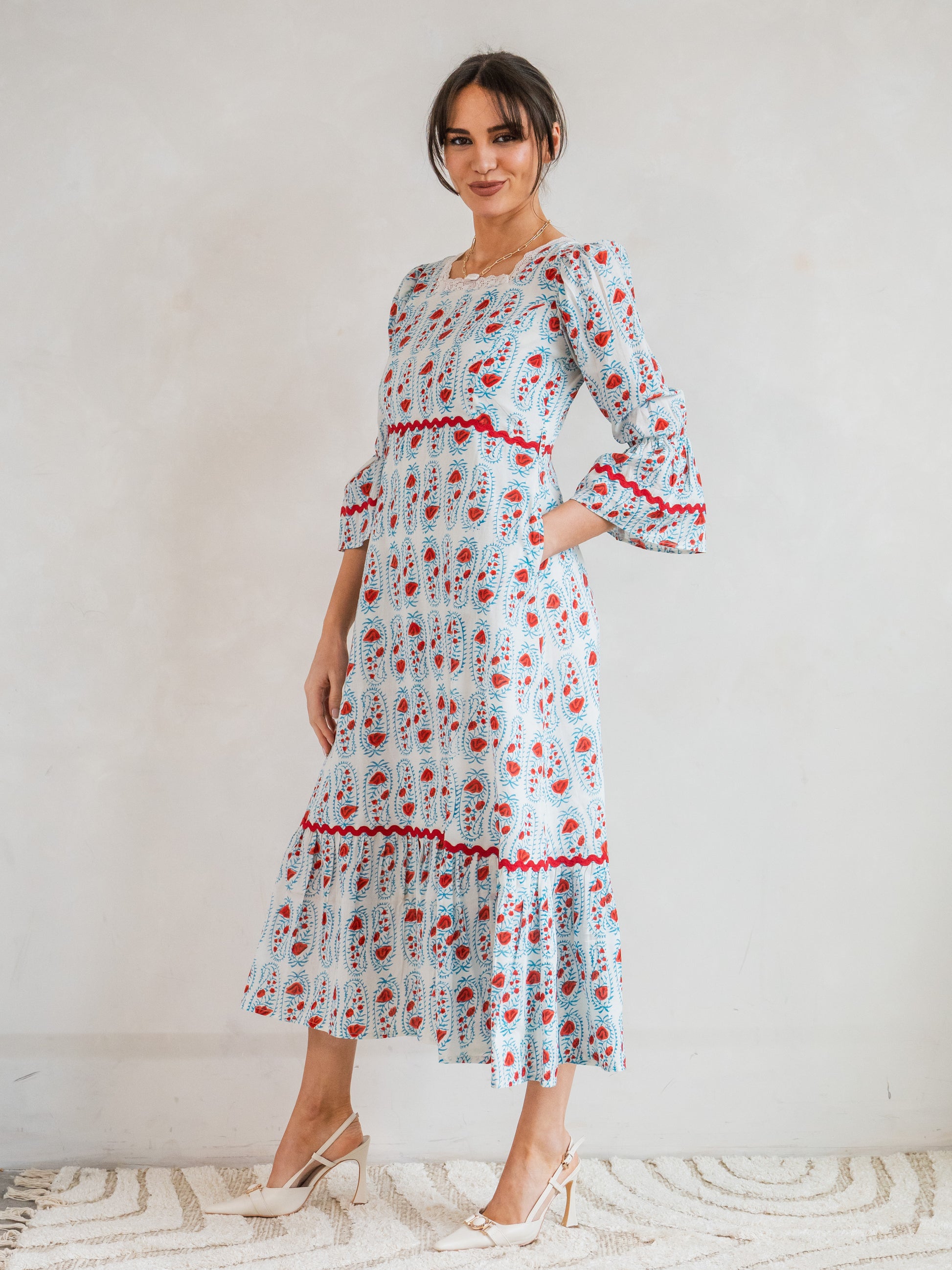 Such a pretty dress. So beautifully made with care and attention. The cotton is of such a high-quality, as is the workmanship. I love it!