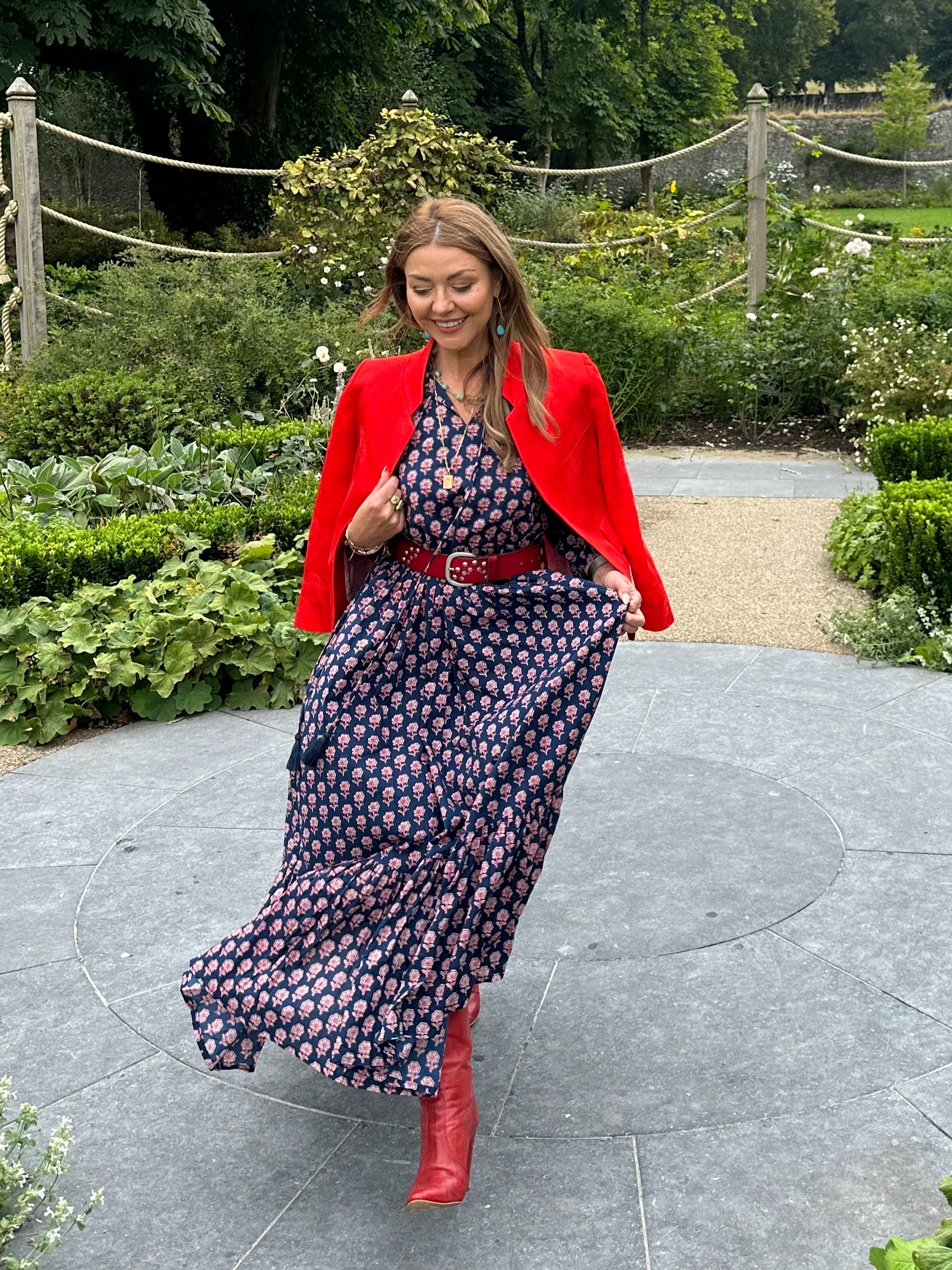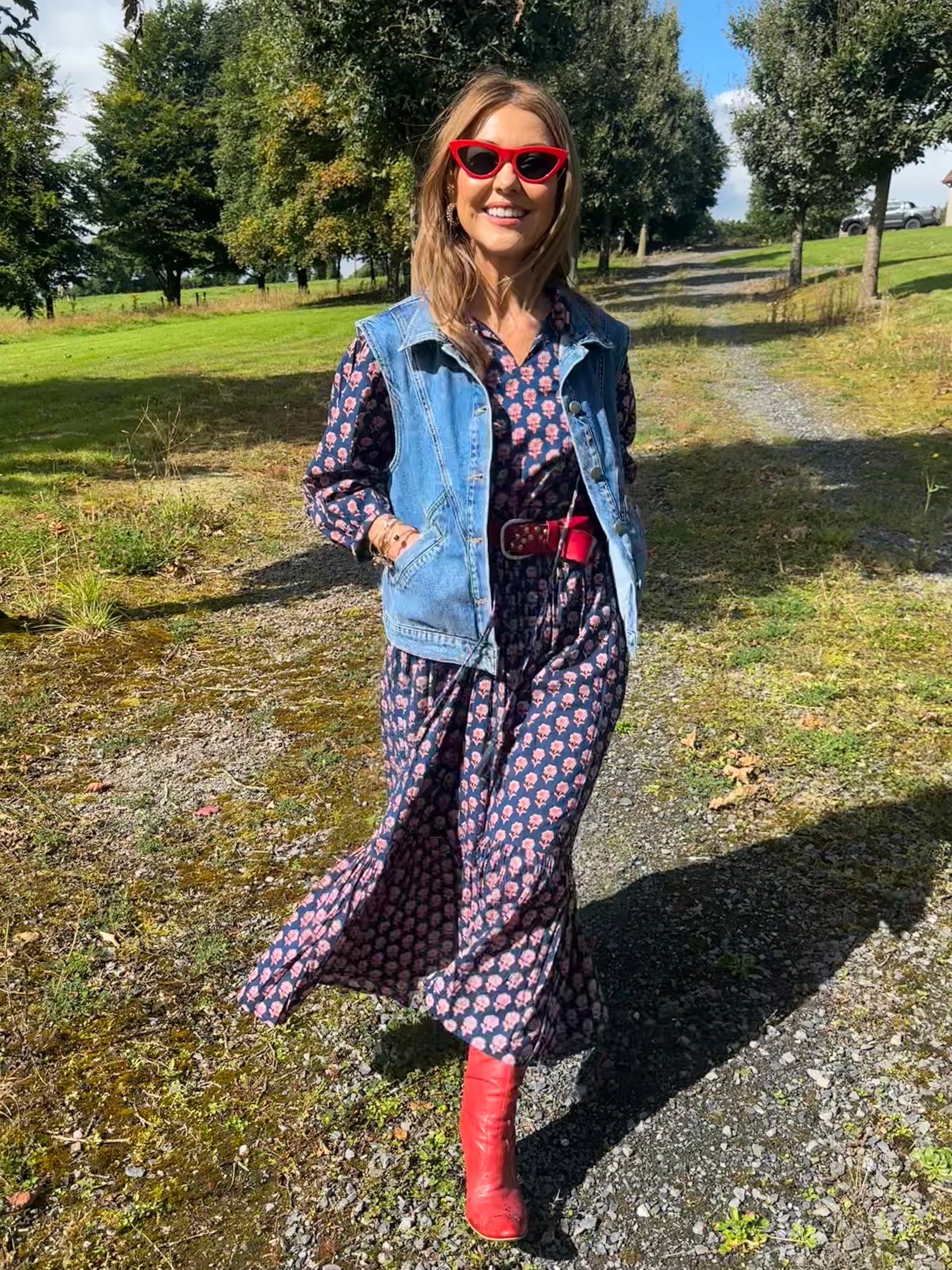 Perfect for pairing with a classic navy blazer for ‘smart days’. I’ve paired it with my red Zadig & Voltaire blazer sourced from Vinted and added some cute ankle boots (about 15 years old!) and belt for an edgy look and to make that red pop! For a cool vibe, pair with a denim jacket - this sleeveless one is from White CoCo in London.