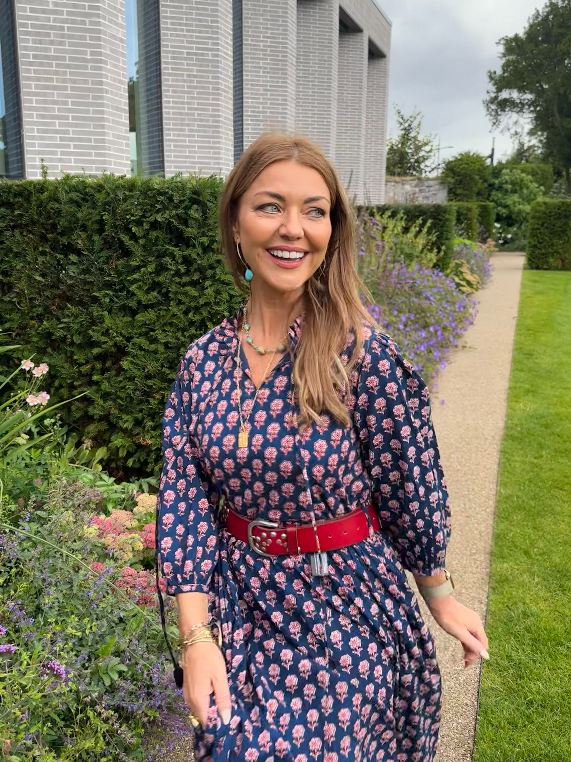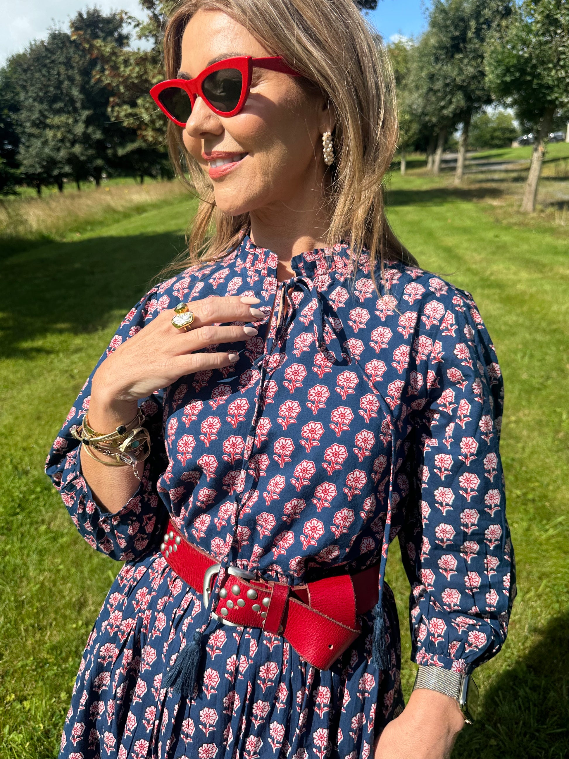 Such a beautiful dress in lovely colours and in cool cotton. I can wear it with or without the belt and the sleeves are also adaptable. It feels gorgeous on.