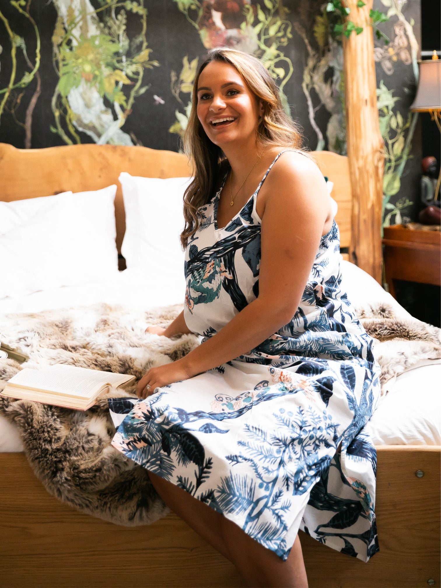 Our ‘Slip Dress’ is a perfect addition to your holiday packing list. The playful ‘Owl Print’ blends classic hues of blues and taupe on a crisp white background to create a fresh look. Pop on over a your swimsuit for breakfast al-fresco or early morning beach walks. Take it from daytime playtime to romantic dinners by adding nude heels and accessories. Pop on a denim jacket as the air cools for evening drinks in the local taverna. And just watch as people admire your ‘je-ne-sais-quoi’ chic & unique style.
